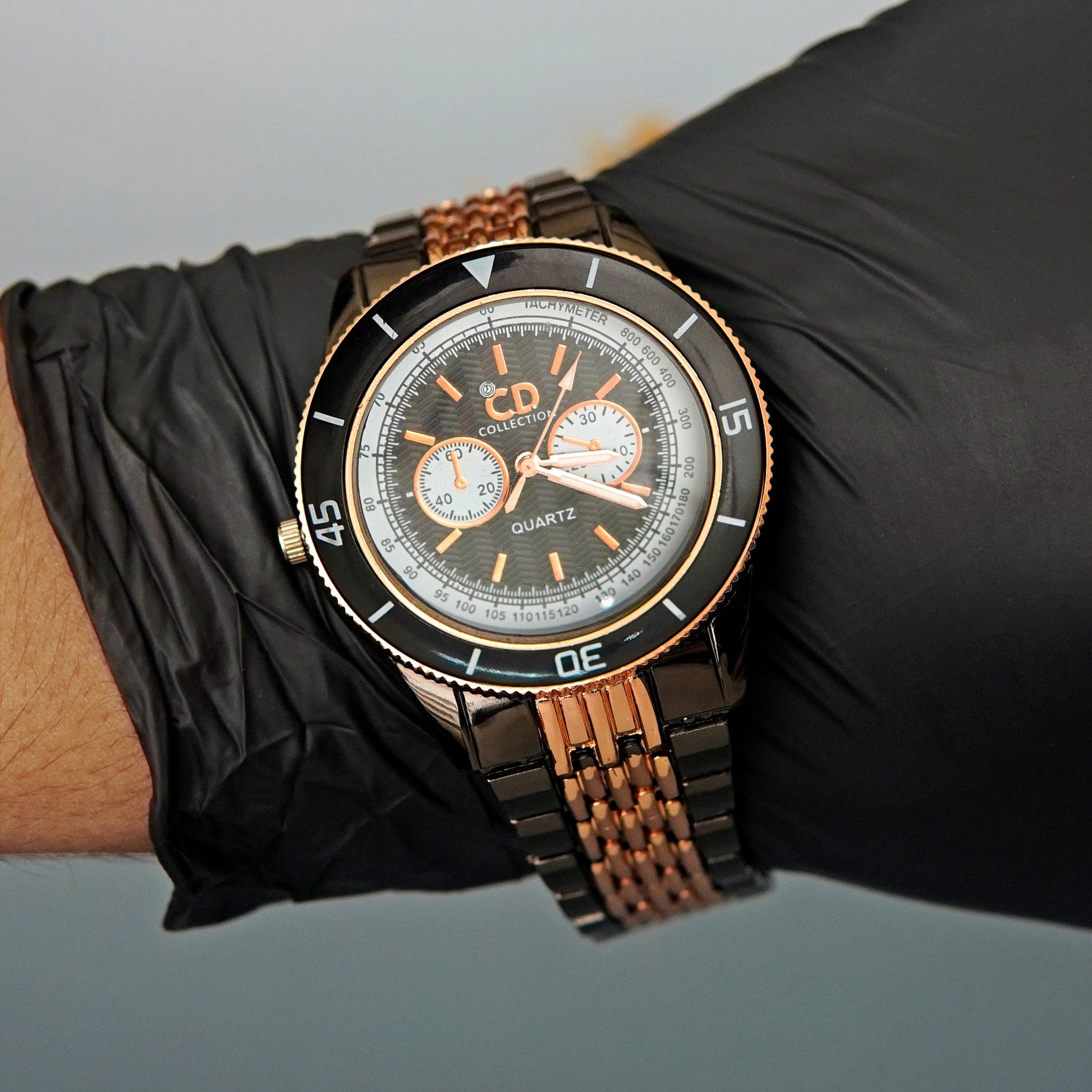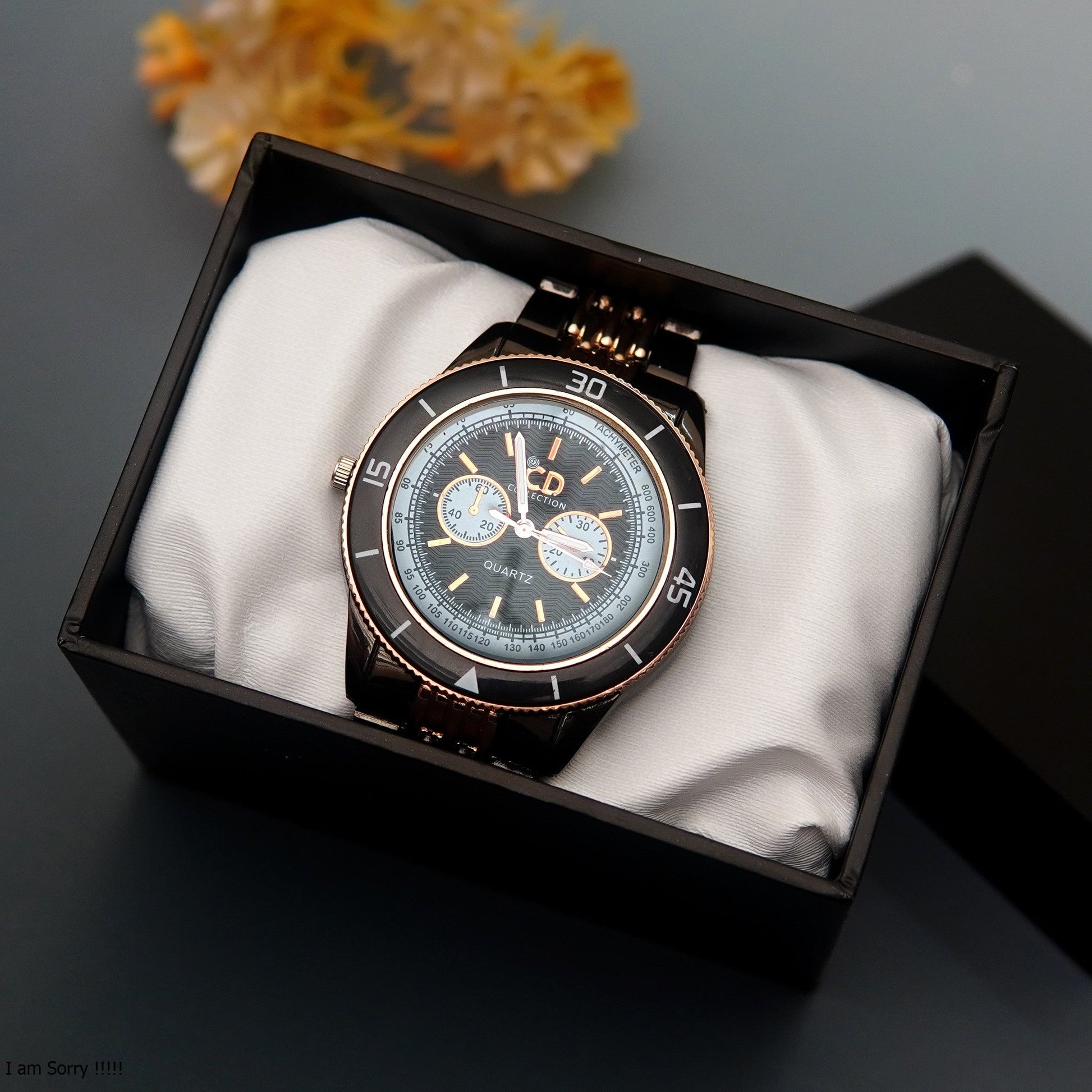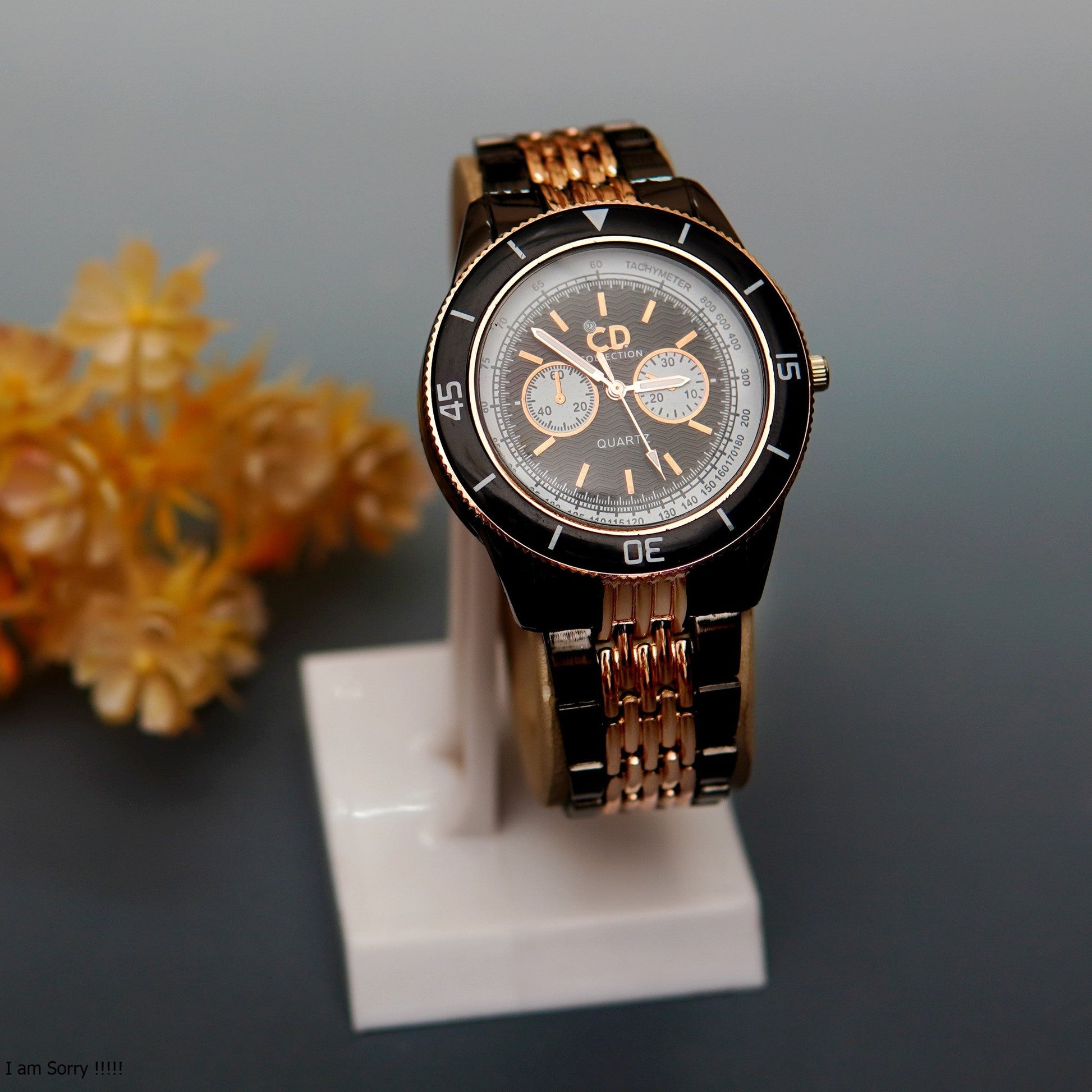 Stainless two tone Band Quartz Wrist Watch CD Collection Turntable Dial Men